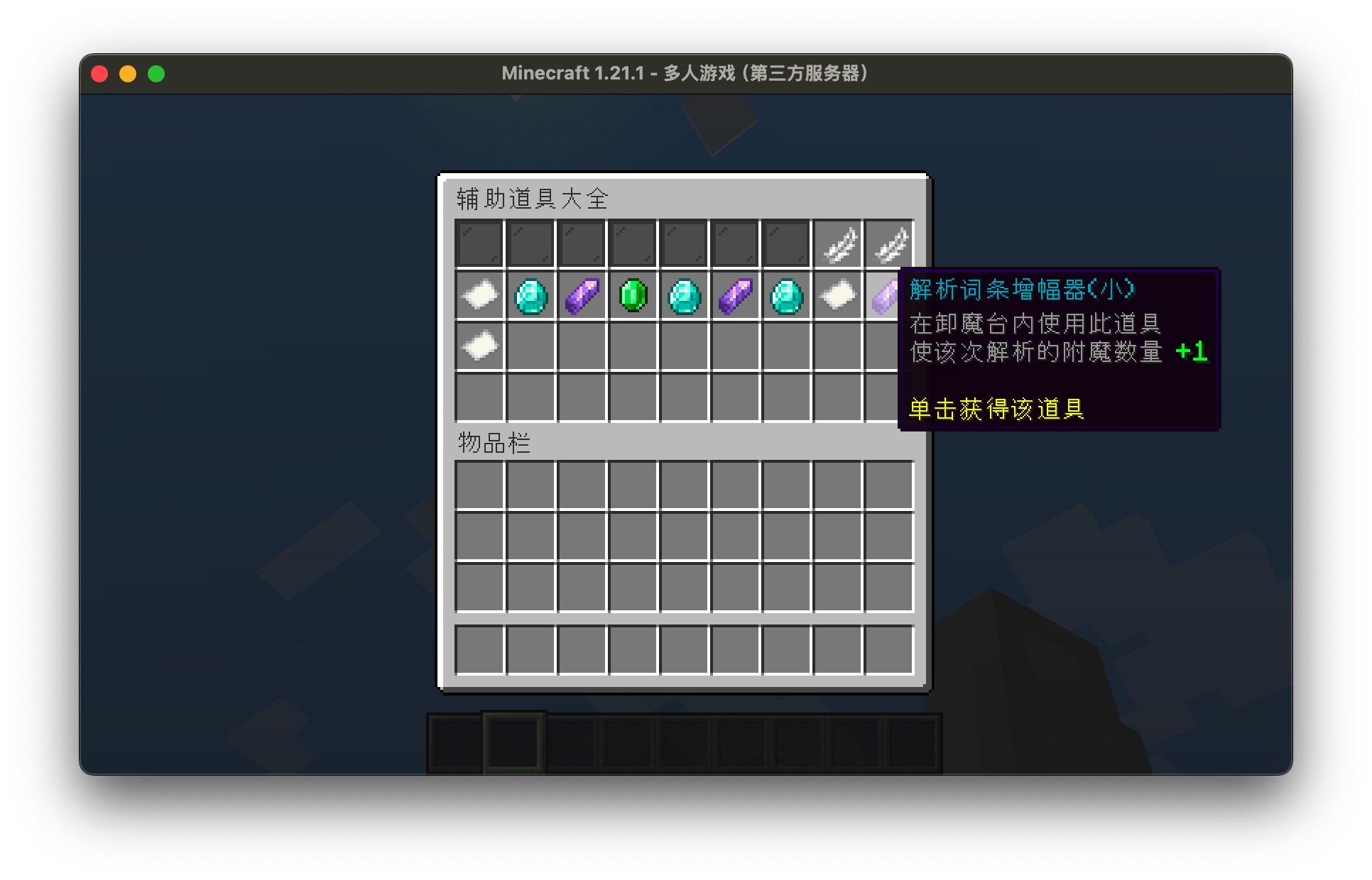 插件Chesed开始主要命令辅助道具界面命令辅助道具界面命令你可以使用该命令为自己或其他玩家打开辅助道具菜单。拥有 chesed.get-gem 权限的玩家可通过点击辅助道具来获得对应道具。该命令需求权限为:chesed.command.gem。